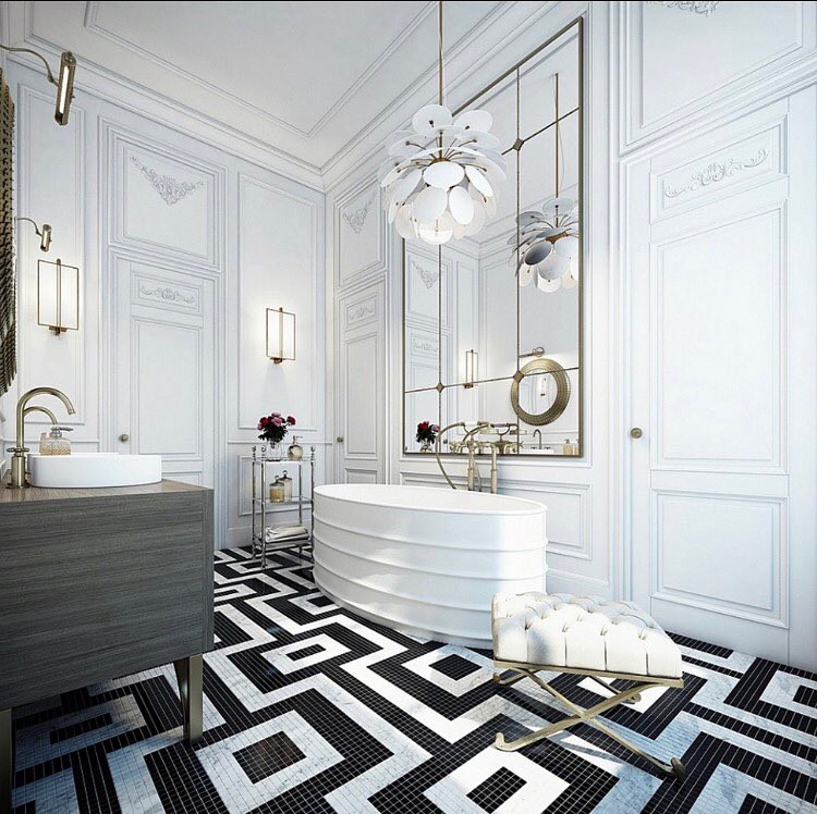 Dalam menentukan keramik kamar mandi mewah anda bisa menggunakan lantai kamar mandi dengan keramik motif kayu atau anda bisa menggunakan parquet tentunya pilih yang tidak licin untuk lantai. Untuk keramik dinding kamar mandi anda bisa menggunakan keramik kecil bercorak hitam putih atau kombinasi warna lain atau bisa juga untuk dinding kamar mandi dipasang batu alam seperti batu palem maupun batu alam lainya. Hal tersebut selain menambah kemewahan juga memberi kesan keunikan kamar mandi anda.
